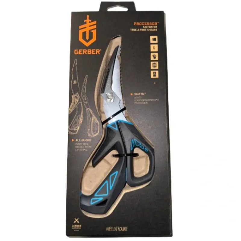 Bait^ Gerber Processor Take-A-Part Shears – Saltwater Black/Blue – Your Premium Fishing Gear Store Rods Lines Baits Accessories