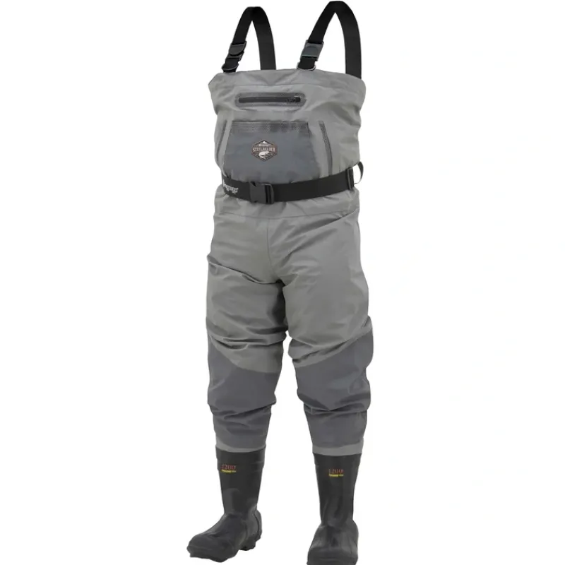 - Adjustable wading belt with locking buckle. 1,200-gram Thinsulate boot with felt outsole.