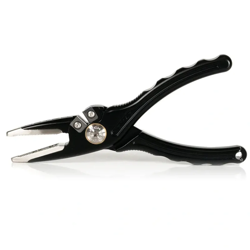 Thedesign of our ever popular Nomad pliers creates exciting options for the avid angler. Utilizing Tungsten Carbide cutters in a side cutting position makes reliable cuts through all fishing line material easier than ever. Gripping grooves added to the jaw tips easily grasp knot tag ends for ideal rigging. The I-Beam arms are crafted from 6061-T6 Aluminum and protected with Type II anodize.The misted finish gives extra texture, keeping Nomad pliers from slipping out of wet hands.