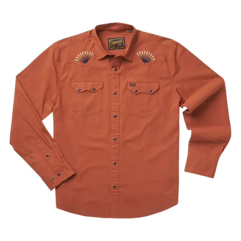The Crosscut Deluxe is the most sought after item in our fall line year in and year out. Yes, the vintage inspired motif embroidery makes a big statement but so too do the bountiful pearl snaps, western yokes and robust stretch chambray. Collect these right along with your Gauchos for year-round Howler coverage.