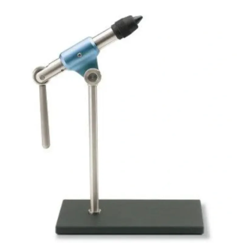 A basic line of Tiemco vises. The TMC Solid Vise features a rotating head and a hinged shaft. It will hold hooks from #32 to #4. Blue anodized center housing stands for the image of high quality Tiemco products. Base model only.