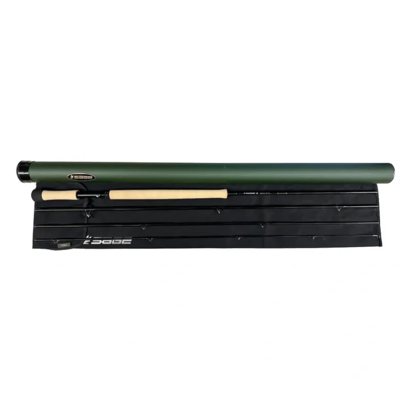 - Black rod bag with Titanium logo and Black Spruce model tag Evergreen powder coated aluminum rod tube with Sage medallion