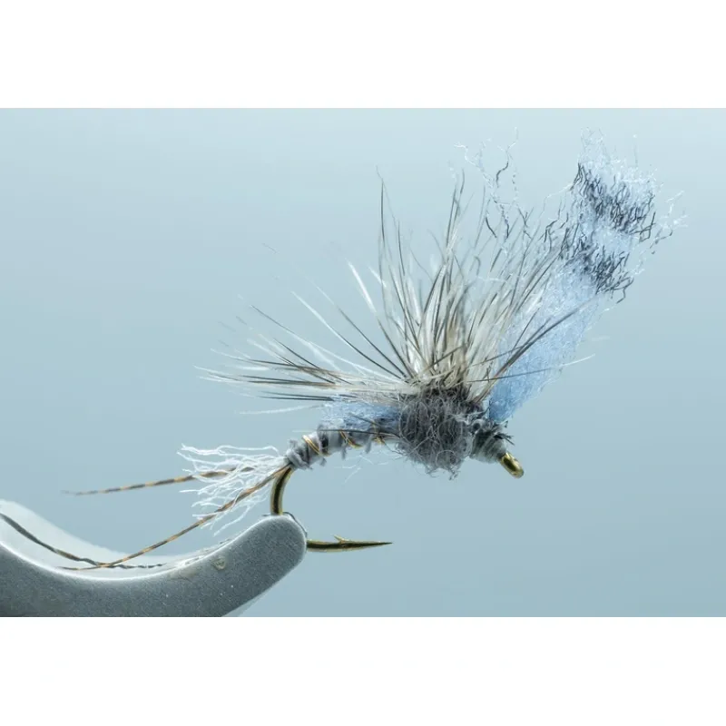 Hands down one of the best mayfly emergers in the game, the Film Critic shines on technical waters, especially spring creeks. It represents a hatching mayfly at its most vulnerable stage, giving trout an easy meal. Tied on a scud hook for added realism, with a tail that looks identical to an empty body casing as the insect emerges. A segmented body and forward-facing poly wing provide an accurate silhouette, and the top hackle of the thorax keeps this fly riding in the surface film.