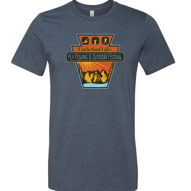 Represent the Cumberland Valley Fly Fishing Festival with this creative T-Shirt that features kayaking, fly-fishing, and hiking.