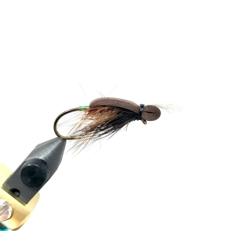 Great summer steelhead skater. A rigid hackle and deer hair underneath with doubled over foam lip means this fly will stay on the surface for the whole day. The small hotspot of tinsel at the back is a great target point for the fish as well.