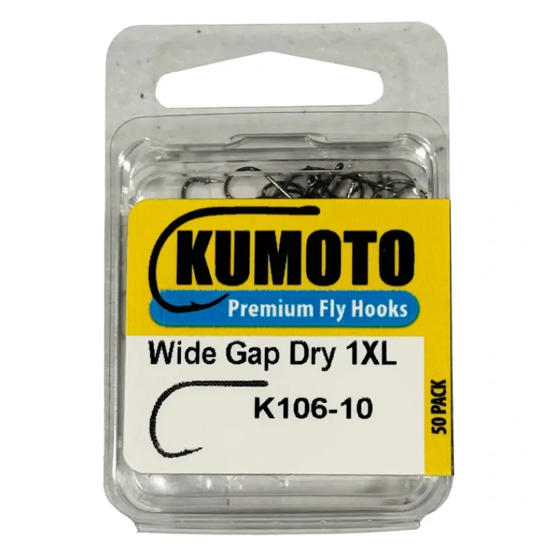 Kumoto Wide Gap 1XL Dry Fly Hooks, A great choice for dry fly patterns requiring a big hook gap such as Micro Chubbies.