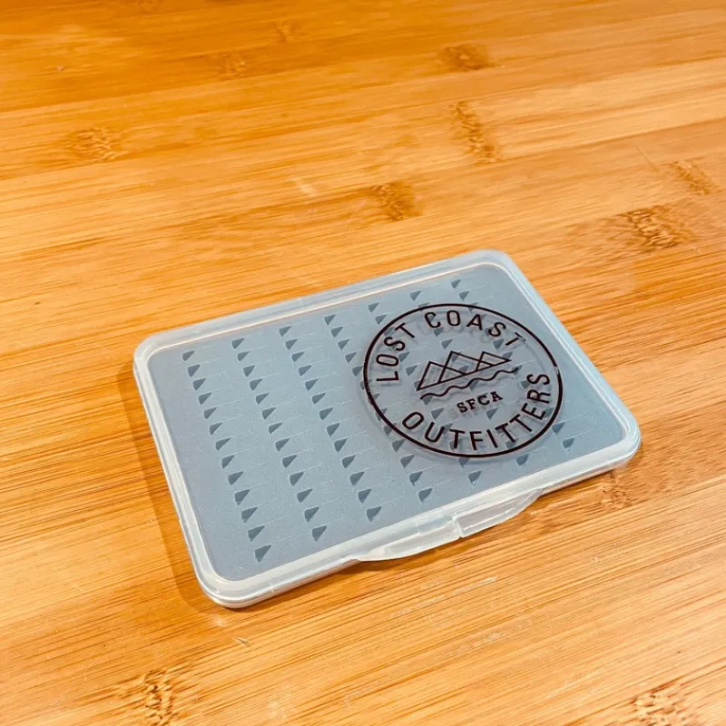 The Large and Medium Ultra Slim Slotted Foam Box, emblemed with the Lost Coast Outfitters logo, provides the ideal storage solution for smaller fly and midge varieties. It is designed to fit neatly into your vest or other gear, without intrusively taking up too much space. Its foam slots make organizing your items a breeze.