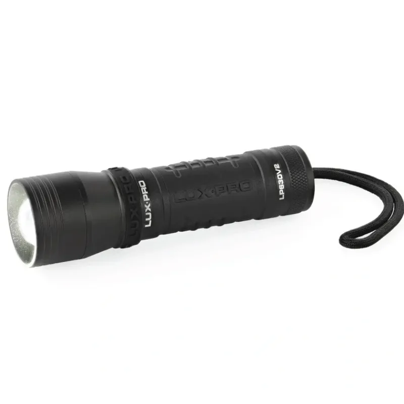 LuxPro focus 560 lumen LED handheld flashlight with TACKGRIP. This is a compact flashlight that has a seamless push/pull focus head that is easy to adjust with one hand. With 4 lighting modes, users can get the light they need for any situation. Access 560 lumens on High, 150 on Medium, and 35 on Ultra-Low. The Ultra-Low setting gives you an extended runtime of over 22.5 hours. This is crucial for emergencies. The hidden strobe can be accessed and exited by pressing the on/off button for approximately 3-4 seconds. Updated electronics allows users to turn the light off with one click after using the selected mode for more than 5 seconds. Constructed with aircraft-grade aluminum and TACKGRIP making it extremely durable. TACKGRIP is patented and exclusive to LUXPRO and is molded directly to the aluminum body for longer-lasting durability that wont slide or curl. This light is o-ring sealed and waterproof with an IPX4 rating.