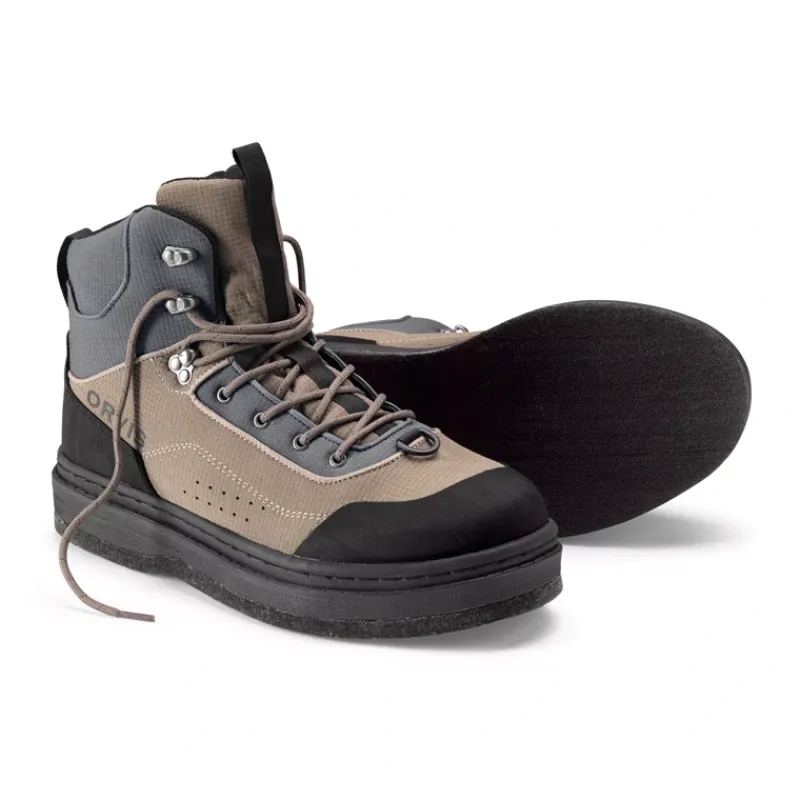 An entry-level boot doesnt mean compromise: Our lightweight felt sole Encounter Wading Boots feature ripstop uppers for excellent weight savings without sacrificing durability with an increased interior volume that allows for a wider, comfortable fit. An EVA midsole provides supportive comfort and excellent stability so you can step with confidence while the padded collar offers ankle support and the toe and heel caps offer protection from abrasion and impacts. 10mm felt outsole. In sandstone.