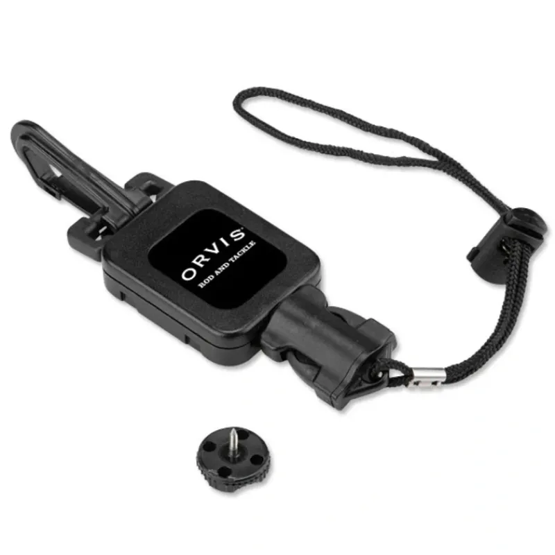 Keep the staff handle at your side when you need it with this wading staff retractor tool. The Gear Keeper Staff Tether features a Spectra/nylon cable. Stainless steel spring and hardware. 60 lb. breaking strength. Mounts anywhere with threaded stud. Extends 32″. Made in USA.