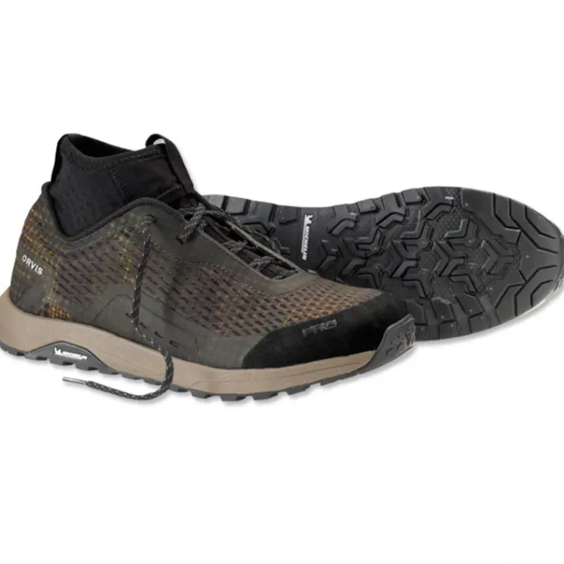 Hiking, boating, wet wading, flatsthe possibilities are endless in the remarkable Men’s PRO Approach Shoe. Versatility is an understatement for this incredibly lightweight, quick-drying, yet rugged multi-purpose shoe. The strength and reduced weight come from seamless PU cage technology that provides superior drainage, as well as durability. An integrated Ariaprene sock prevents debris from entering the shoe while providing excellent ankle support and breathability. Continuing the innovative PRO footwear story is a the Michelin Outdoor Extreme rubber outsole that provides 43% better wet rubber traction and 25% higher abrasion resistance than the competition. Removable 3D molded OrthoLite insole rests on a single density phylon midsole for all-day comfort and enhanced “river feel.” Integrated lace hood allows laces to easily tuck away. Men’s sizes 7-14. Weighs 23 oz. in size 10. Polyester/polyurethane upper. EVA midsole. Nylon face/Ariaprene inner sock. Rubber outsole. Imported.