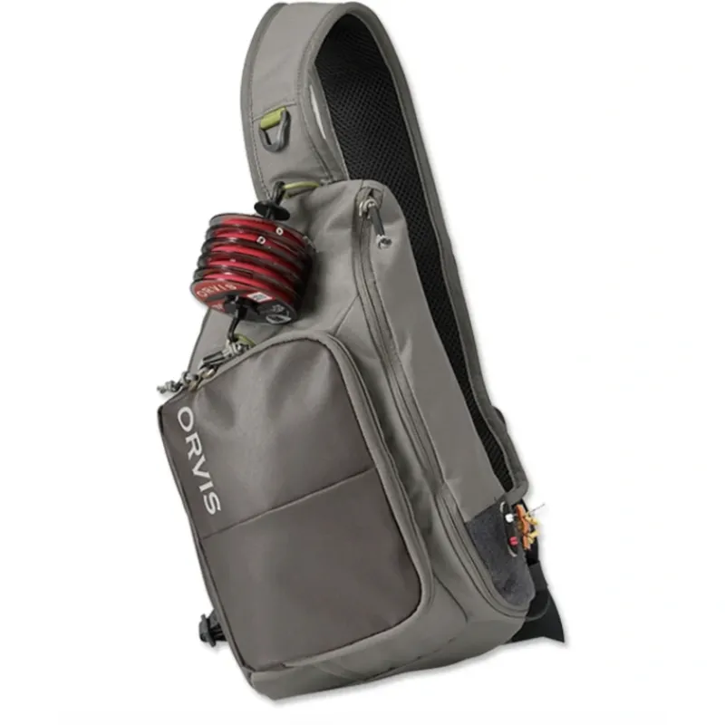 There are times when all it takes is a fly box, a couple of spools of tippet, and a couple of tools when you know where they are and exactly what they’re eatingthe 100% recycled ECO CORDURA Orvis Mini Sling Pack offers simple, intuitive accessibility while staying completely out of your way when fishing. Main body storage pocket with internal drop pockets and a zippered pocket. Smaller main body zippered pocket with organizational drop pockets for smaller items. Loop tippet bar attachment. Front strap zinger docking station, fly patch, forceps attachment point, and rear D-ring for net attachment. Zinger/nipper pass-through. Adjustable sternum strap. Left shoulder design frees up casting arm and shoulder. Weight 300g/.66 lbs.