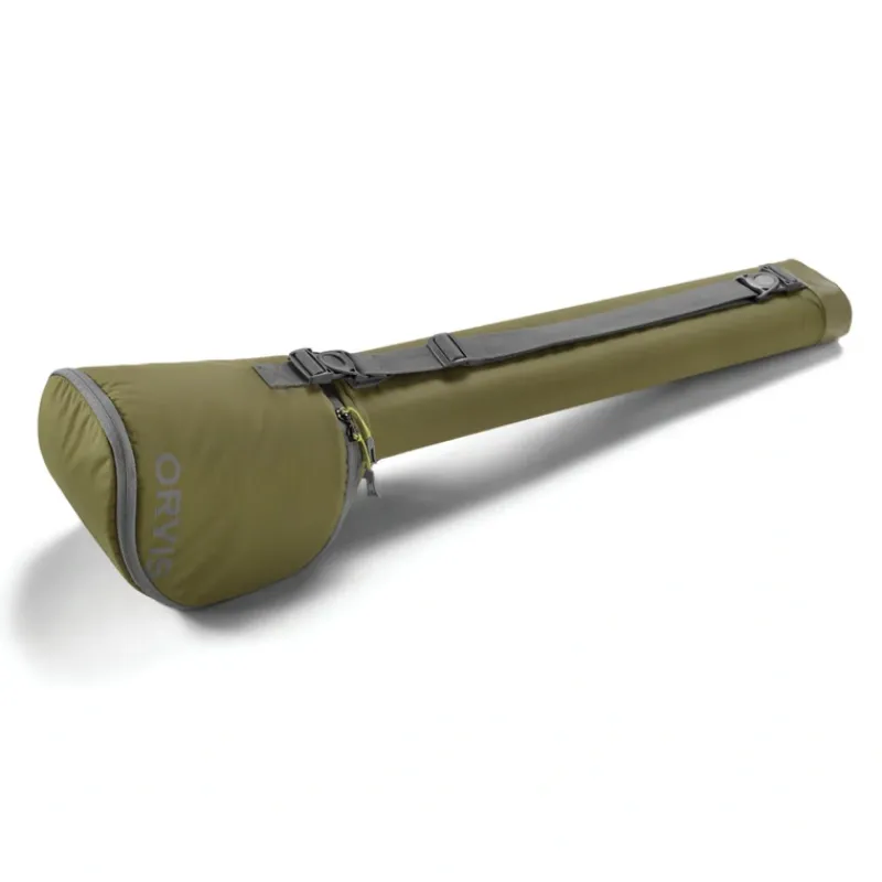 The best travel protection available for a rod and reel. A rugged PVC tube offers great protection for the rod while a padded top protects the reel. The top portion completely unzips to allow unobstructed access to rod tube, and will accommodate both conventional reels and large arbor designs. Smooth nylon lining and small zippered mesh pocket. Removable and adjustable shoulder strap with perforated foam pad for comfort on the double case. Large comfortable carry handle with supergrip fabric. Holds up to a 10′ four-piece rod.