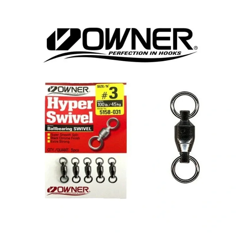 For your terminal tackle needs, choose from Owners High-Performance Hyper Ball Bearing Swivels and Hyper Ball Bearing Swivels with Coastlock Snaps. Both swivels feature super-strong stainless steel construction with a corrosion resistant black chrome finish. Ultra smooth swivel action offers no-twist protection when trolling and for big game leader connections.
