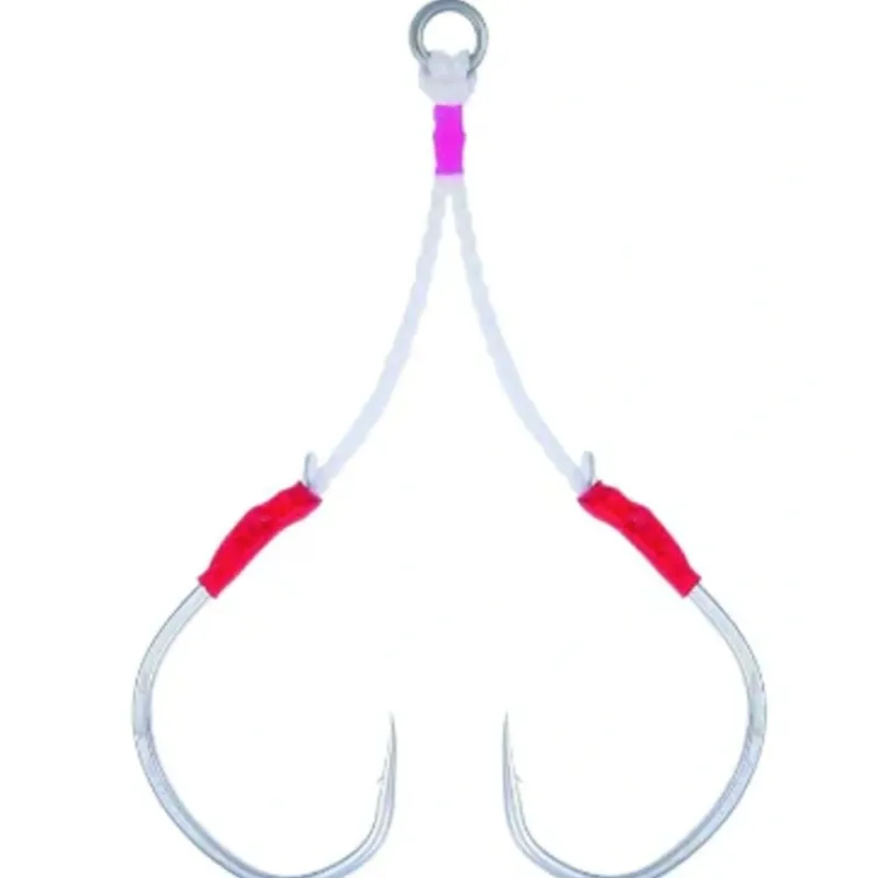 - Fluorocarbon is threaded inside each length of braid to discourage hooks fouling on each other. Two assist hook pairs per package.