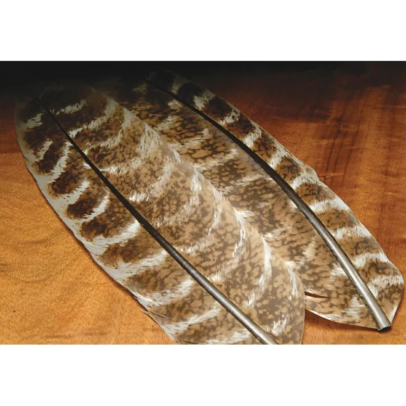 The mottled pattern of the turkey quills can simulate the segmented bodies of aquatic insects like mayflies and caddisflies. Use the quills to wrap around the hook shank to create a natural-looking segmented effect.
