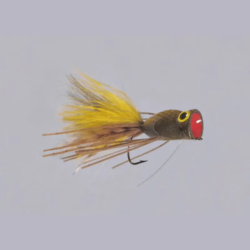 Rainys rattling frog is unmatched in quality and fit and finish for this popper. This fly is a flat bottomed with a wide gap to ensure hook up ratios even with a large weed guard make to get though the most dense foliage where predatory fish like to hang around.