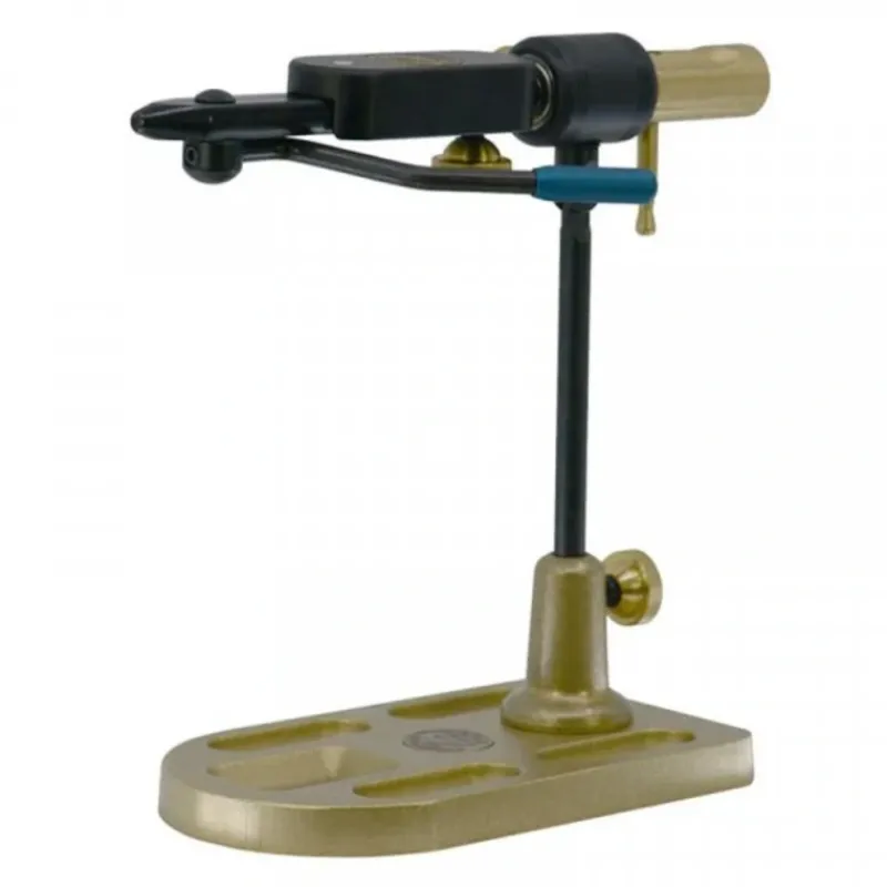 The REVOLUTION VISE combines the ultimate hook holding power of their famous head design, and true in-line rotary function. You can rotate the vise for winding materials on the hook, or tighten the barrel and wrap materials in the traditional method. All REVOLUTION VISES are true in line rotary revolving around a 360 axis and articulating 220 up and down.