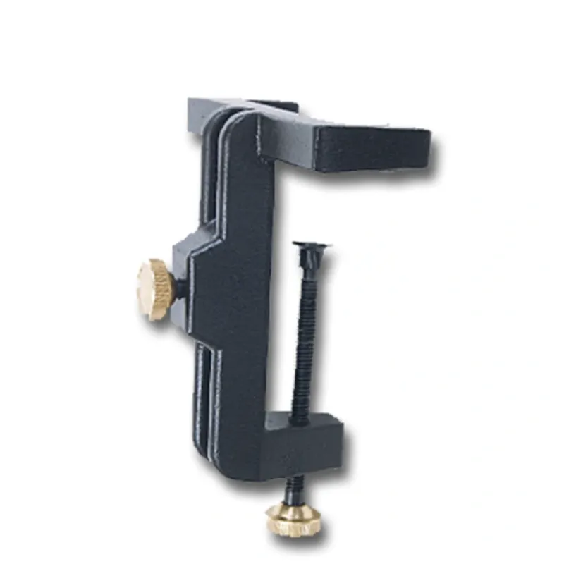 The Royal C-clamp from Regal was designed with dual stabilizing bars for greater stability when attached to tables, work benches and other flat surfaces. The overall length of the bar is 5″, or 2.5″ on either side of the center of your stem. The table grip mount opening is 3.25″, which vastly improves the flexibility of where it can be used, and incorporates scuff guards at each end.