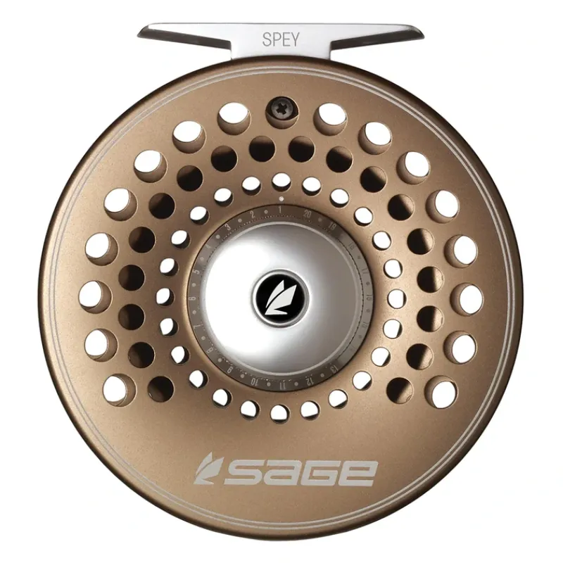 Sage Spey Fly Reel, Classic aesthetics with modern performance. The SPEY introduces a reel designed for the angler looking for a reel that addresses the nuances of Spey fishing. Heavier to better balance longer rods and increased capacity to hold larger Spey lines, the Spey Reel features full line guards to assure thin running lines do not migrate between the spool and frame during dynamic casting motions. A romantic appeal to designs and colors that reflect the classic feel of old yet packed with performance features that will assure youll never lose that fish of a lifetime.