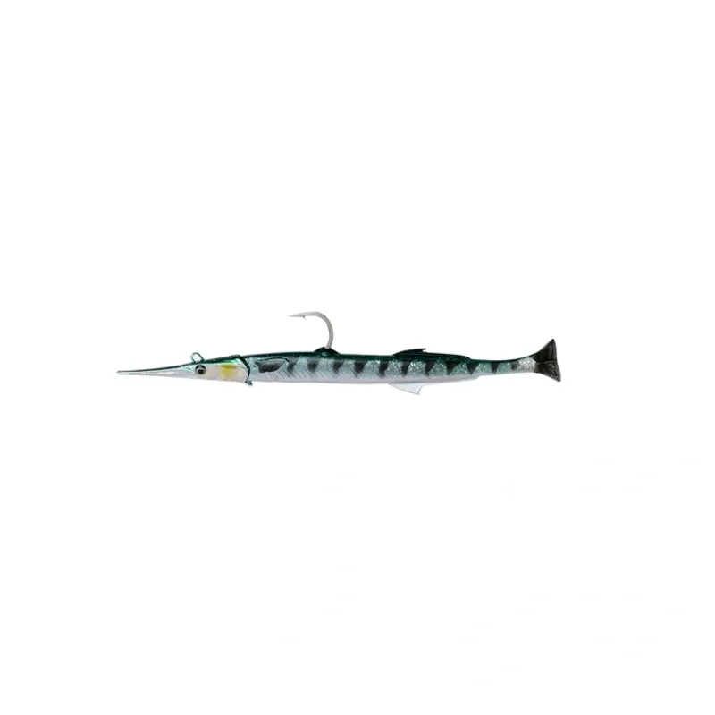 Omnipresent prey for a great variety of saltwater predators, needlefish cause a natural feeding response, and Savage Gears new Pulsetail Needlefish capitalizes on that with a bait that not only looks like the real thing, but is identical in action as well. Based on a scan of an actual needlefish, its photoprint detail in head and body is perfect. The patent-pending Pulsetail is active when retrieved at even slow speeds.