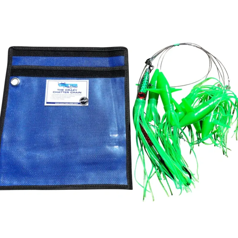 The ChatterLures Crazy Chatter Chainhas become one of the most popular offshore lures on the market, designed specifically with North East canyon tuna fishing in mind. Our version of the classic mini bird and machine daisy chain is crafted using only ultra-high quality components that will surpass even the most discerning captains expectations.