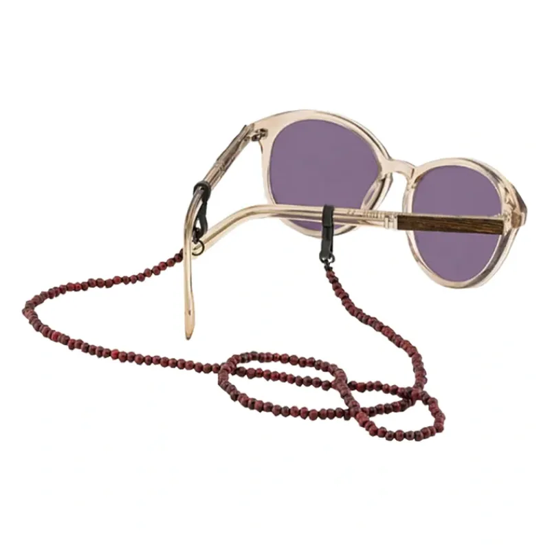 Wood beads in various sizes, colors and finishes – with some styles that also have dark glass seed beads.