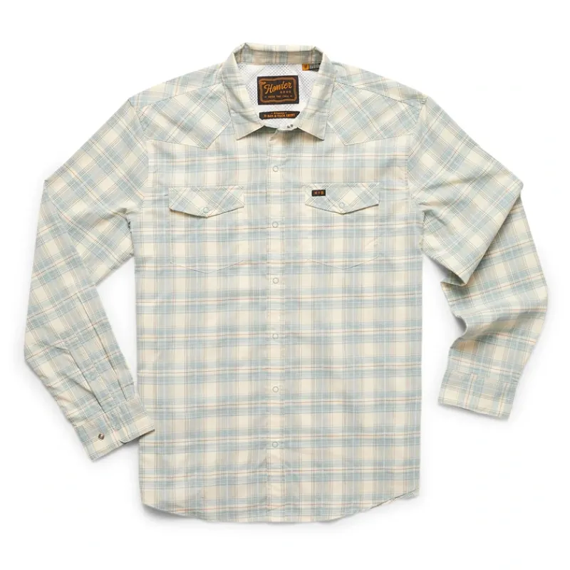 The H Bar B Tech is the technical member of our H Bar B family. Its lightweight stretch nylon-poly fabric, vented rear yoke and ring snaps give you an advantage over the elements without making you look like you set out to conquer the world when youre just taking care of everyday business. Other features include our signature sunglass cleaning microfiber at the right hem and a hidden zipper pocket at the lower right seam.