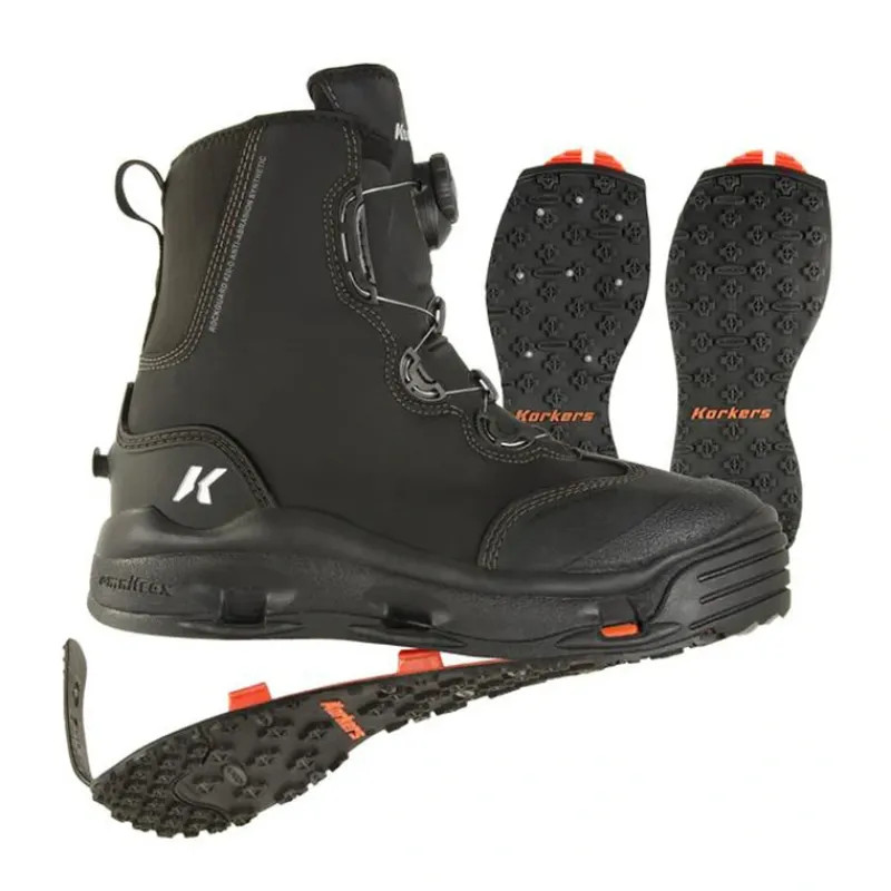 Traction:OmniTrax Interchangeable Sole System adapts your traction to any fishing condition. Two outsoles included with every purchase.