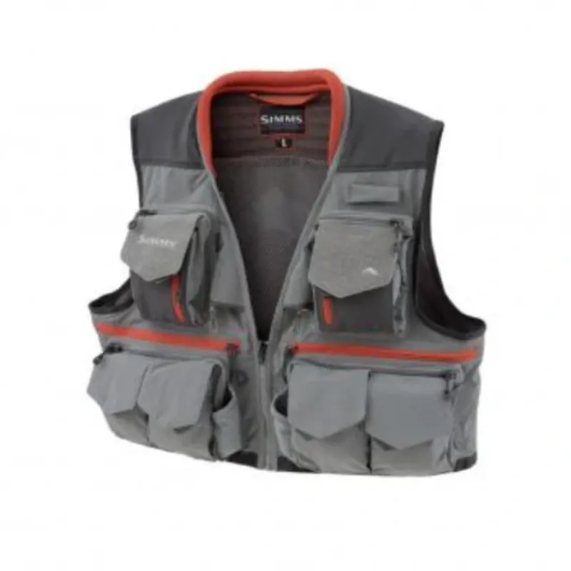All you ever really need is a hand on the rod and a foot in the river, but bringing along an arsenal of gear is a nice bonus. Simms Guide Fishing Vest is spacious, intuitive, and comfortable for outings that last from dawn until dusk. The vest includes 26 pockets to fit all your tackle and more, and a third-hand rod holder that frees a hand when you need to release that wriggling 2-footer. A ventilated, padded collar adds plush comfort that keeps you cool on long days snapping casts across the water. The vest is finished in a water-resistant coating.