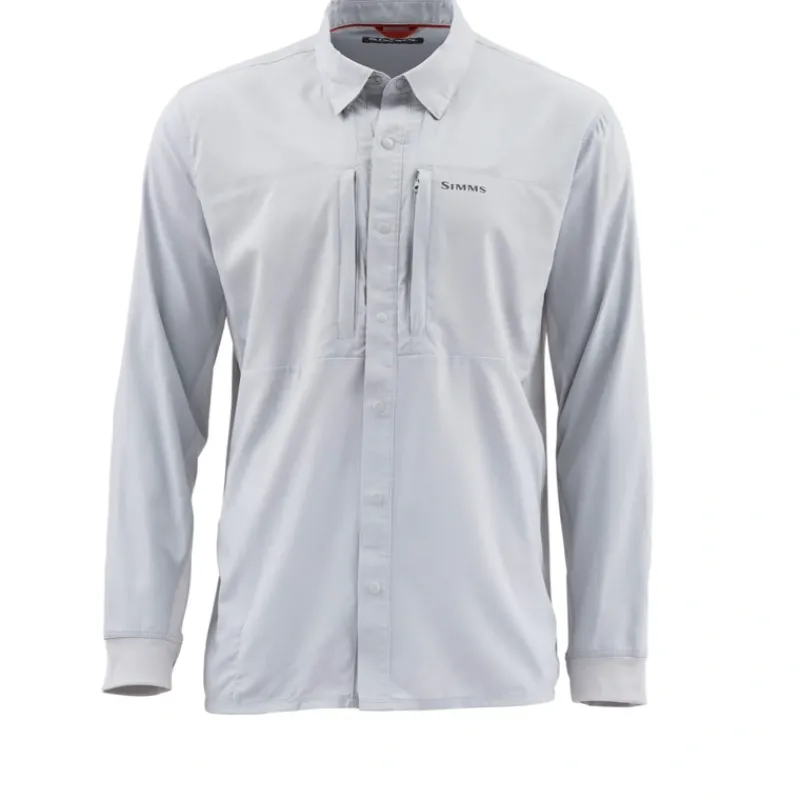 The Simms Intruder BiComp Shirt is a tech-rich, stain-fighting fishing top that enhances range of motion and provides ample storage for essentials.