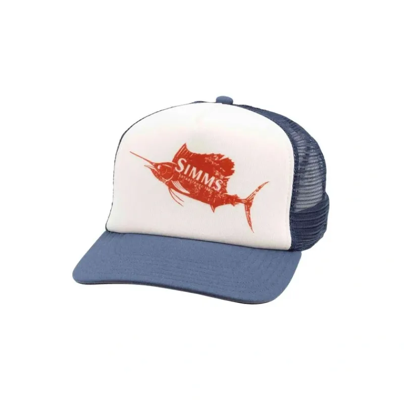 The Simms Sail Fish Trucker hat takes the ocean to the streets.