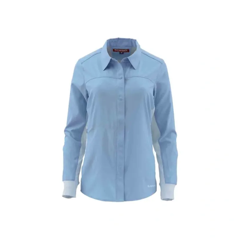 The Simms Women’s BiComp Fishing Shirt is designed to provide comfort and performance on the water. It’s made with COR3 technology that wicks moisture, dries quickly and offers UPF 30 sun protection. A zippered fly-box compatible pocket provides storage space, and a sunglass chamois is located inside the bottom hem.