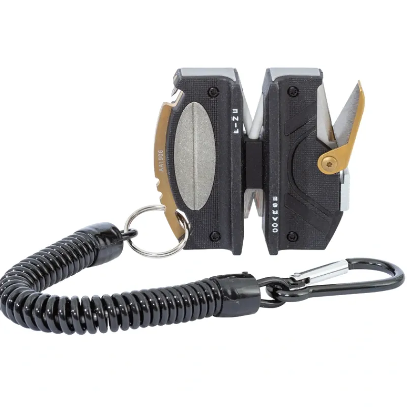 Smith’s Regal River Fishing Multi-Tool is a compact tool that includes both coarse and fine sharpening slots, mono-braided line cutter, jig eye cleaner, diamond hook sharpener, non-slip feet, pocket clip, and lanyard hole. It also comes with an extendable lanyard which easily attaches to a belt loop.