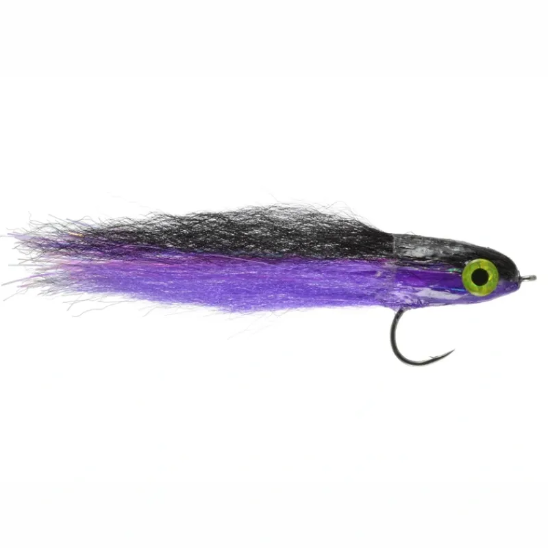 Charlie’s Airhead: This is just a terrific pattern created by Charlie Bisharat for any large predator. It is big, long and moves water with authority, yet it casts like a dream. Large baitfish eyes and simple yet striking contrasts in color round out this almost perfect baitfish imitation. For Salt or Freshwater if you are after big fish this is your pattern.