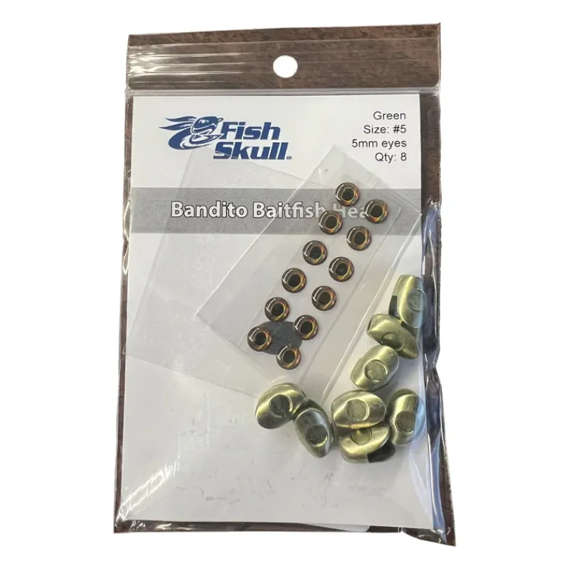 The Bandito Baitfish Head is a weighted head with a realistic baitfish profile. The Innovative design enables you to tie effective, professional looking flies. Includes Fish-Skull Living Eyes.