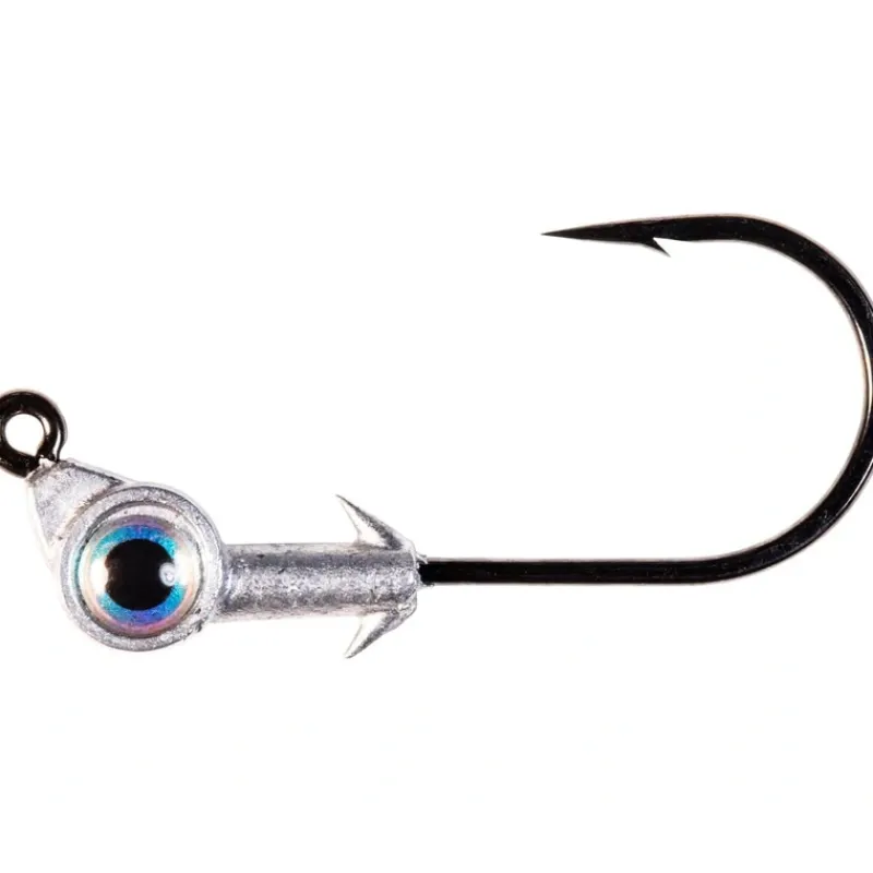 - Z-Man Swimbait Eye Jigheads are the newest series of swimbait jigheads to join the Z-Man Eye Strike family of terminal tackle products. The Swimbait Eye builds off the success of the Trout Eye, Redfish Eye, and Striper Eye Jigheads and uses an oversized holographic eye sure to attract nearby predators. Perfectly balanced to track true at all retrieve speeds, the Eye Strike Swimbait Eye Jighead matches up with an array of popular 3- to 6-inch swimbaits, including the MinnowZ, SwimmerZ, and Scented PaddlerZ. Built on heavy-duty and 5/0 VMC hooks, these jigheads sport a streamlined nose-forward head design that minimizes snagging and fouling. Dual, sharp keeper barbs grip ElaZtech and traditional plastisol-based soft plastic baits and hold them tight to the jighead.
