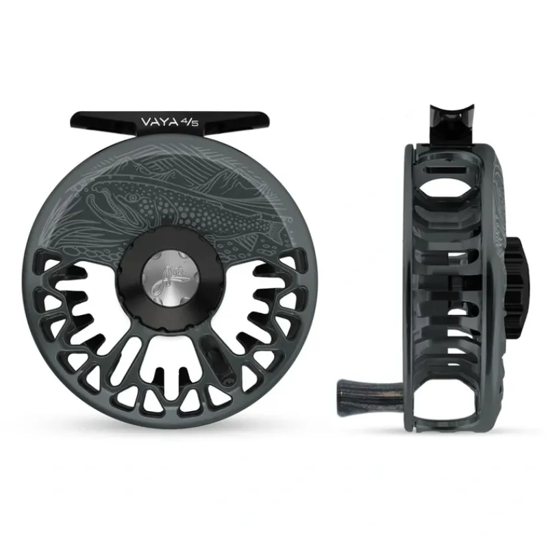 Fishing Line^ Abel Vaya Reel 4/5 Slate Gray, Gloss Black Drag Knob, Underwood On the Hunt Engraving with Ebony Handle – Your Premium Fishing Gear Store Rods Lines Baits Accessories