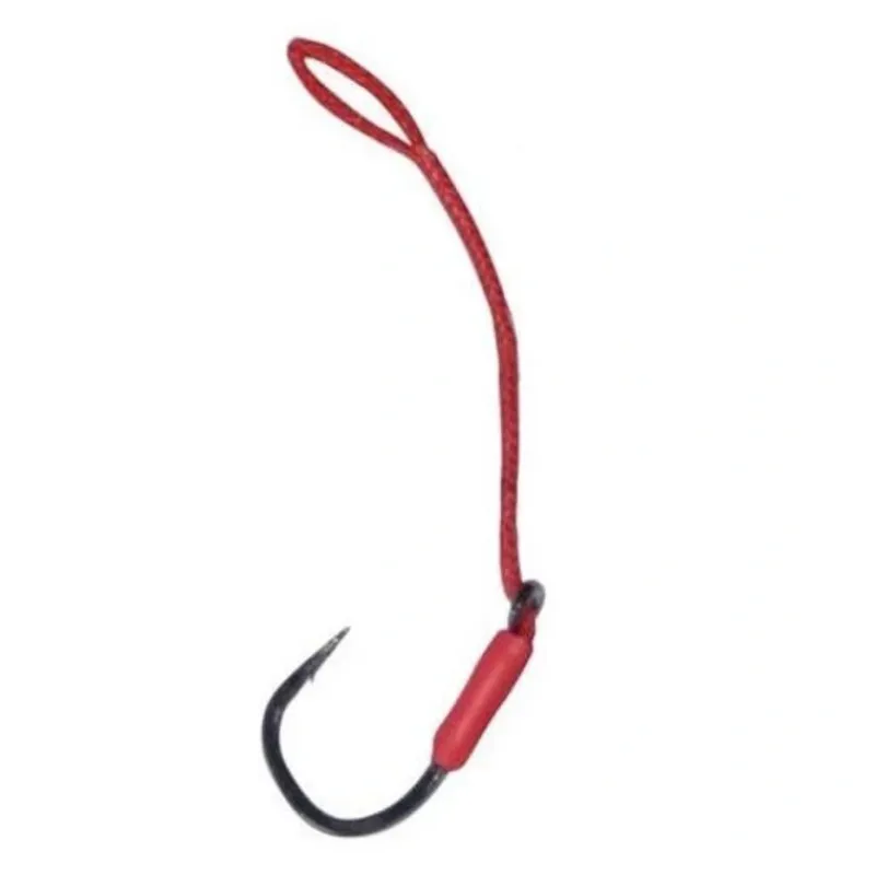 “Assist Hooks” are designed to be placed on the top eye of the Saltiga Sacrifice lures to increase your success ratio. The flexibility of Dyneema line drastically reduces the fishes ability to tear the hook loose during prolonged battles