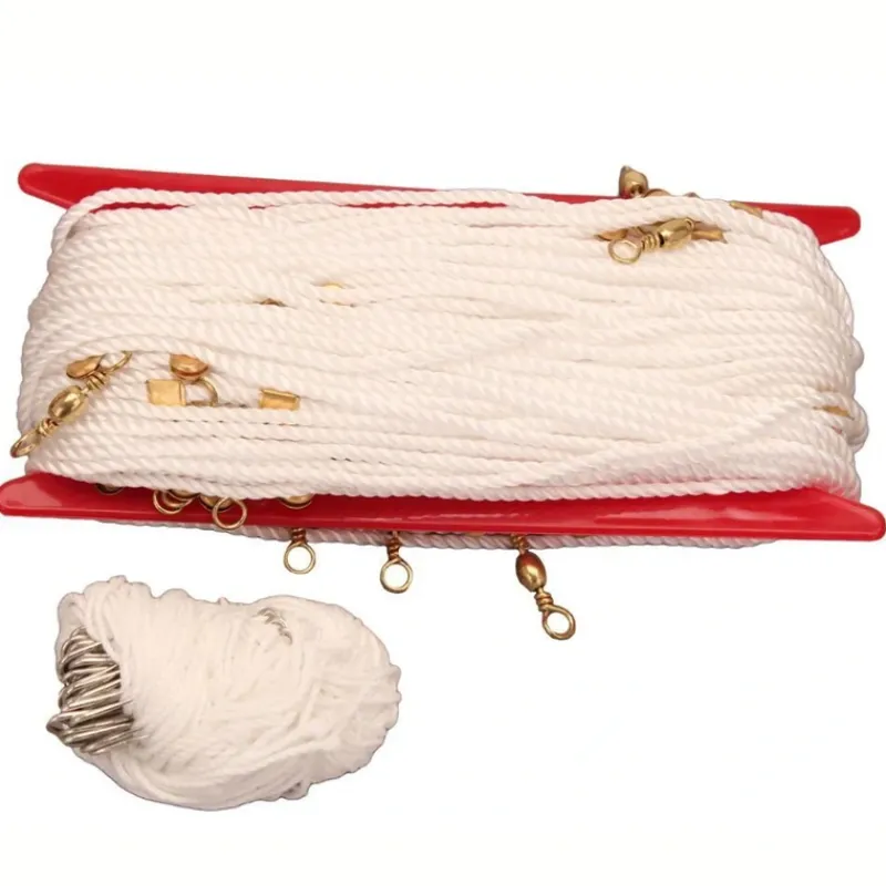 The Eagle Claw ATROT150 Trotline is an essential tool for avid freshwater anglers, particularly those targeting catfish. This trotline spans 150 feet and comes equipped with 25 Eagle Claw 049Z-3/0 hooks, providing a ready-to-use setup for efficient and effective fishing. Its robust design is suitable for various skill levels, from beginners to experts, ensuring that both novice and seasoned fishermen can benefit from its use. Made in China, this trotline features high-quality construction that promises durability and reliability in various freshwater environments.