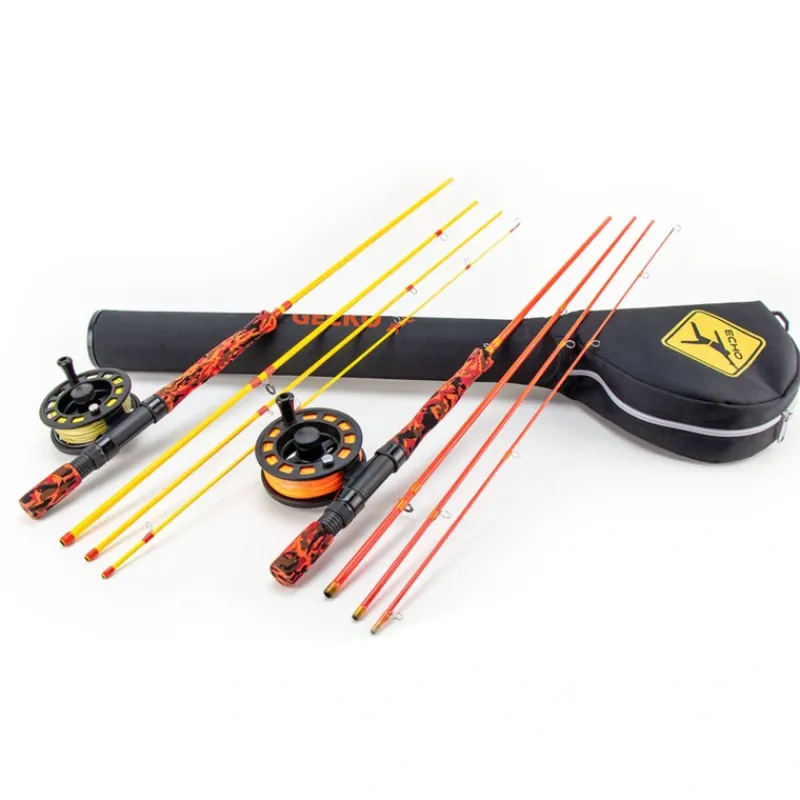 The Gecko is the ultimate fishing tool for little guys and gals. With a modest, forgiving action and kid/hippy-friendly cosmetics, the Gecko is ready for action. Featuring a small lower grip for two-handed casting, the Gecko can be fished with one or two hands. Comes with rod/reel/line package that comes strung up and primed for the water.