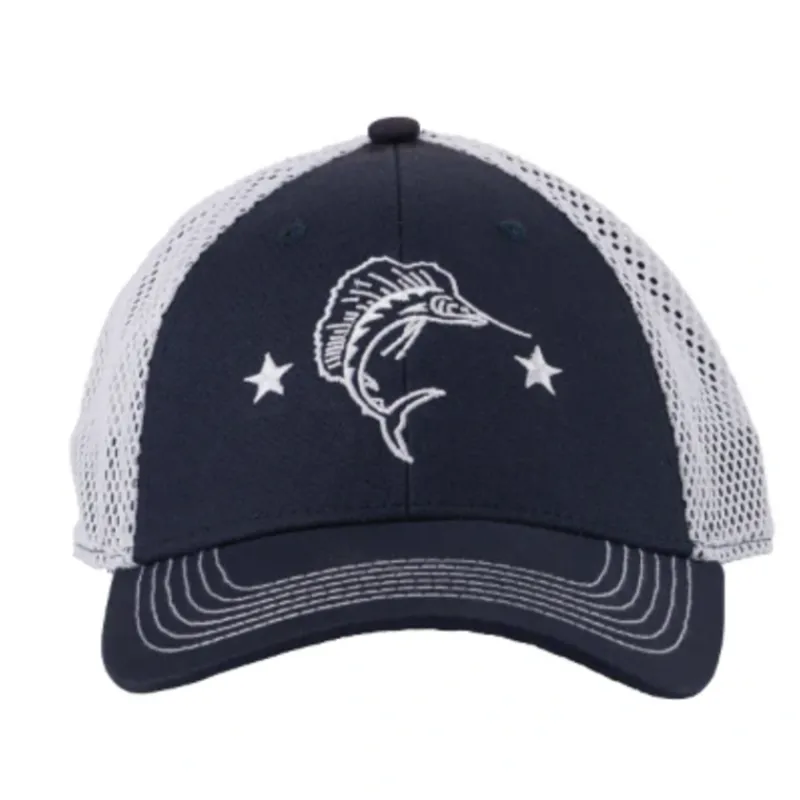 The Fin-Nor low-profile hat with performance polyester mesh side and back panels will keep you cool and comfortable in style. The breathable mesh panels help wick moisture and dry quickly, keeping your head cooler when the temperature rises. Sailfish embroidery on front panel and Fin-Nor woven patch detail on closure. Adjustable hook & loop closure allows for a custom fit.