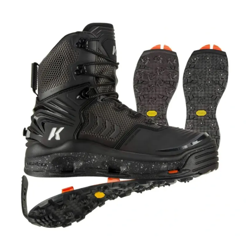 Korkers Internal Drainage system quickly purges water and keeps every step feeling light and agile, while the unique Lace Lock feature allows for a customized bi-zonal fit. Last, but certainly not least, each pair of River Ops boots comes standard with two sets of interchangeable soles that include premium Vibram wet & dry rubber traction. The new River Ops boots feature an extended two-year warranty and Korkers proprietary OmniTrax Interchangeable Sole System with nine different traction options far more than any other in the industry.