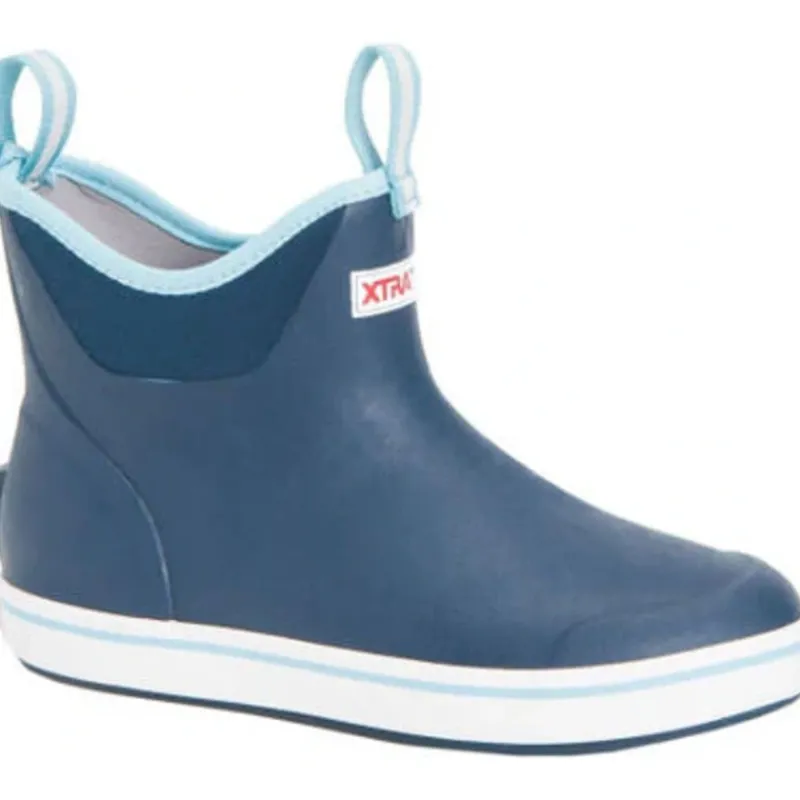 The Ankle Deck Boot collection has been crafted specifically for Off-Shore anglers. Anglers are athletes, and like any athlete they need the best footwear to help them perform at a high level. We’ve created a lightweight design with the same slip-resistant Chevron outsole found in our Legacy boots. The performance ankle deck boot is the perfect boot for any on the water athlete looking for protection with slip-on-and-go styling. This Navy boot features a complementary light blue detail at the sole, pull-tabs and top lining for added style.
