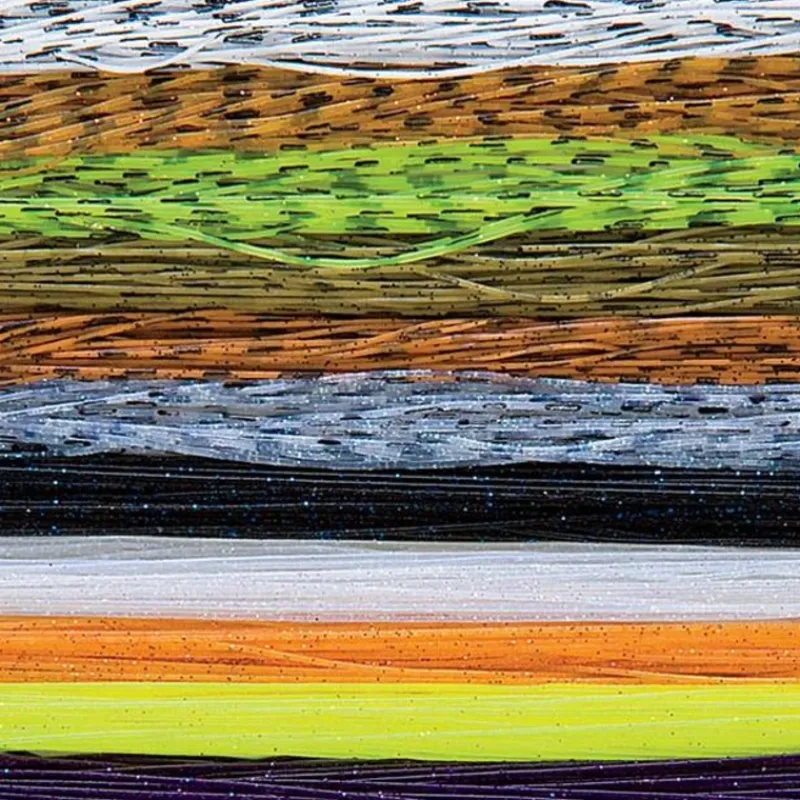 Rubberlegs with a printed black barring that creates a real “fishy” look. Made from 100% silicone. Extremely strong and lifelike action. Silicone will not degrade becoming brittle when exposed to UV light like rubber or latex will. Solid colors with barred colors. Great for use in nymph legs, foam dry patterns, poppers, crab legs. Eliminates the worry of falling apart in the fly box due to rotting. Please specify color.