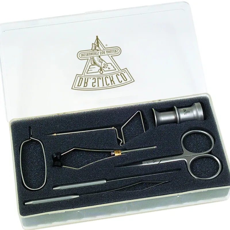- SAP4 Scissor, CBOB4 Bobbin and BOD-ST, BT-ST, HSM-ST, WF4-ST, HP-ST Tying Tools in Large Fly Box with ripple foam inserts – Item #: STEEL TYER