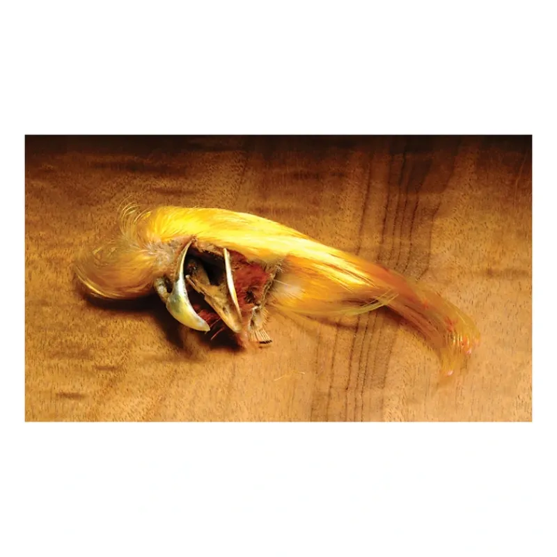 Mandatory material for tails on traditional salmon and steelhead patterns. The shimmer and shine of golden pheasant crest feathers is unmistakable. These crests are high quality and graded for fly tying.