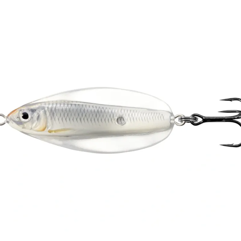 LIVETARGET has bridged the tradition of old spoon craftsmanship with a new generation of tech-savvy production to create the first-ever anatomically precise spoon; The Erratic Shiner. The lure has a life-like Inner-Core with a pulsating vibrant flash, an Exo-Skin that produces an erratic wide-wobble, darting effect imitating an injured baitfish. Designed for long casts; also excellent for trolling.