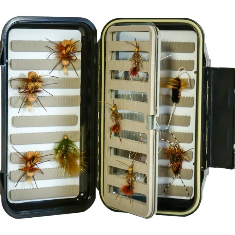 Logo Go To w/ Leaf Fly Box, Trout, Steelhead, Bass, Blue Fill, Carp, a fisherman never knows what kind of fish he will be chasing from day to day. To be prepared, all fisherman need a “Go To box.” A box that will allow you to fish for whatever and whenever the opportunity presents itself. With a detachable swing lead, positive latch, and sure grip exterior, hundreds of flies can call this box home. This is a rugged, durable, watertight box that anglers will utilize for years.