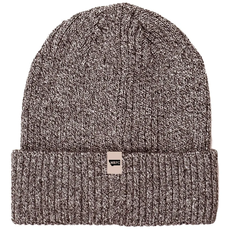 Cuff beanie with different color yarns that create a heathery look